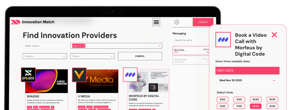 Meet verified tech companies through curated 1:1 meetings — online and in person — tailored to your specific challenges.
